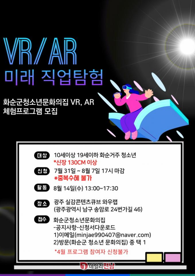 ̿ ü ؿ 130 ̻, 10 ̻~ 19 ̸ ȭ ûҳ 30 Ѵ. û 7 31Ϻ 8 7ϱ ȭ ûҳȭ (http://hwasunyouth.or.kr/) ۼϿ 湮 ûϰų, ̸(minjae990407@naver.com) ûϸ ȴ. Ÿ ȭûҳȭ (379-5176) ϸ ȴ.