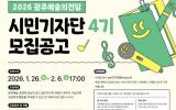 [µ¥Àϸ®Àü³² = ÃÖ¼ö¿¬ ±âÀÚ] ±¤ÁÖ±¤¿ª½Ã ¿¹¼úÀÇÀü´çÀº Àü´çÀÇ ´Ù¾çÇÑ °ø¿¬ Á¤º¸¿Í ¹®È ¼Ò½ÄÀ» Á÷Á¢ ÃëÀçÇÏ°í °ø½Ä ¿Â¶óÀΠä³ÎÀ» ÅëÇØ ¾Ë¸± ¡®2026 ±¤ÁÖ¿¹¼úÀÇÀü´ç ½Ã¹Î±âÀÚ´Ü 4±â¡¯¸¦ 26ÀϺÎÅÍ 2¿ù6ÀϱîÁö ¸ðÁýÇÑ´Ù. ½Ã¹Î±âÀÚ´ÜÀº ¹®È¿¹¼ú °ø¡¦