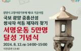 [µ¥Àϸ®Àü³² = ÃÖ¿µ¹Î ±âÀÚ] ±¤¾ç½Ã´Â ¡¸±¤¾ç½Ã °íÇâ»ç¶û±âºÎÁ¦ Á¦1È£ ±â±Ý»ç¾÷¡¹À¸·Î ¼±Á¤µÈ ¡®±¹º¸ ±¤¾ç ÁßÈï»ê¼º ½Ö»çÀÚ ¼®µî Á¦ÀÚ¸® ã±â »ç¾÷¡¯ÀÇ ¹ü½Ã¹Î ¼¸í¿îµ¿ 5¸¸ ¸í ´Þ¼ºÀ» ±â³äÇØ ½Ã¹Îµé°ú ÇÔ²²ÇÏ´Â ±â³ä½ÄÀ» ¿À´Â 12ÀÏ 14½Ã ½Ãû ´ëȸ¡¦