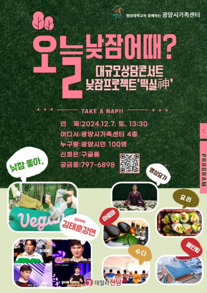 ̹ ܼƮ 100 ڸ Ѵ. 11 19Ϻ û ް ð Ȩ(gwangyang.familynet.or.kr) ̴. α ִٸ ð(061-797-6898) ϰų īī÷ģ, νŸ Ȯϸ ȴ.