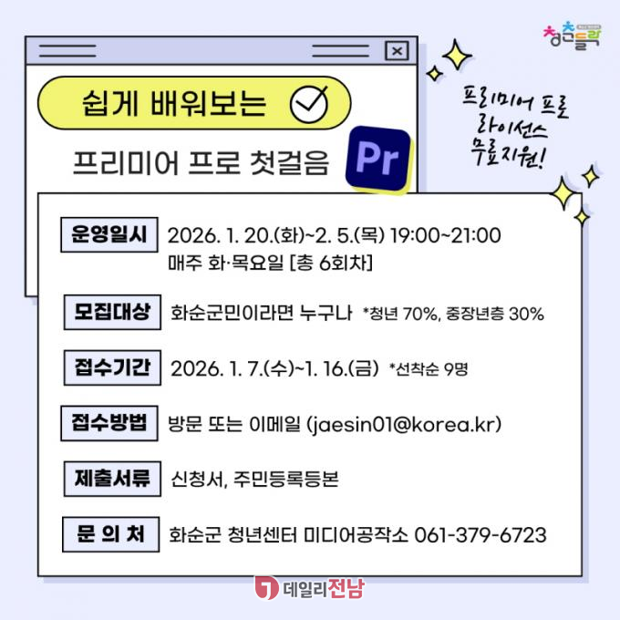 û ڰ ȭ̸ ϸ, ο 70% û 켱 ϰ, 30% ̴. û û Բ ֹεϵ ؾ ϸ, 1 16ϱ ȭ û⼾ 湮ϰų Ȩ(https://www.hwasun.go.kr/youth) ûϸ ȴ.