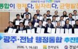 [µ¥Àϸ®Àü³² = ÃÖ¼ö¿¬ ±âÀÚ] ±è¿µ·Ï Àü¶ó³²µµÁö»ç¿Í Àü³²½ÃÀ屺¼öÇùÀÇȸ´Â 16ÀÏ Á¤ºÎÀÇ ¡®ÅëÇÕÆ¯º°½Ã¿¡ ´ëÇÑ 4³â°£ 20Á¶ ÀçÁ¤Áö¿ø µî Åë Å« 4´ë Àμ¾Æ¼ºê¾È¡¯À» ȯ¿µÇÏ¸é¼ ¡°ÇàÁ¤ÅëÇÕ ¸ð¹ü»ç·Ê¸¦ ¸¸µé¾î ´ëÇѹα¹ ±ÕÇü¹ßÀü¿¡ ±â¿©Çϰڴ١±°í ´ÙÁüÇß¡¦