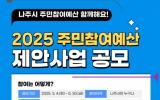 [µ¥Àϸ®Àü³² = ÃÖ¼ö¿¬ ±âÀÚ] ³ªÁÖ½Ã(½ÃÀå À±º´ÅÂ)´Â ³»³âµµ ¿¹»ê Æí¼ºÀ» À§ÇÑ 2025³âµµ ÁÖ¹ÎÂü¿©¿¹»ê »ç¾÷ °ø¸ð Á¢¼ö¸¦ ¿À´Â 5¿ù 30ÀϱîÁö ½Ç½ÃÇÑ´Ù°í 4ÀÏ ¹àÇû´Ù. ¿ÃÇØ ÁÖ¹ÎÂü¿©¿¹»ê ±Ô¸ð´Â ÃÑ 30¾ï ¿ø À̳»·Î ½Ã¹ÎµéÀÇ »îÀÇ ÁúÀ» ³ôÀ̰í Áö¿ª ¡¦
