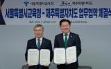 [µ¥Àϸ®Àü³² = ÃÖ¼ö¿¬ ±âÀÚ] Á¦ÁÖÆ¯º°ÀÚÄ¡µµ¿Í ¼¿ïƯº°½Ã±³À°Ã»ÀÌ Áö¼Ó°¡´ÉÇÑ ±³À°Çù·Â »ç¾÷ ¹ß±¼°ú Áö¿ª°¡Ä¡ È®»êÀ» À§ÇØ ¼ÕÀ» ¸ÂÀâ¾Ò´Ù. Á¦ÁÖµµ´Â 28ÀÏ ¿ÀÀü 11½Ã ¼¿ï½Ã±³À°Ã» º»°ü¿¡¼ ¡®Áö¼Ó°¡´É ¹Ì·¡¸¦ À§ÇÑ ±³À°Çù·Â ¾÷¹«Çù¾à¡¯À» ü°áÇß¡¦