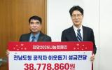 [µ¥Àϸ®Àü³² = ÃÖ¼ö¿¬ ±âÀÚ] Àü¶ó³²µµ´Â 11ÀÏ ¿¬¸»¿¬½Ã¸¦ ¸Â¾Æ °øÁ÷ÀÚµéÀÌ ¸ð±ÝÇÑ ÀÌ¿ôµ½±â ¼º±Ý 3õ800¸¸ ¿øÀ» Àü³²»çȸº¹Áö°øµ¿¸ð±Ýȸ¿¡ Àü´ÞÇß´Ù. Àü´Þ½Ä¿¡´Â Ȳ±â¿¬ Àü³²µµ ÇàÁ¤ºÎÁö»ç¿Í Ç㿵ȣ Àü³²»çȸº¹Áö°øµ¿¸ð±ÝȸÀå µîÀÌ Âü¼®Çß´Ù. Àü¡¦