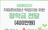 [µ¥Àϸ®Àü³² = ±è¼ºÇö ±âÀÚ] ¿ÏÁÖ±ºÀÌ Áö³ 19ÀÏ, ÀÚ¸³Áغñû³â 4¸í¿¡°Ô Çо÷Áö¿øÀ» À§ÇÑ ÀåÇÐ±Ý 400¸¸ ¿øÀ» Àü´ÞÇß´Ù. ÀåÇÐ±Ý Àü´Þ½Ä¿¡´Â À¯ÈñÅ ¿ÏÁÖ±º¼ö, ±èÀçõ ¿ÏÁÖ±ºÀÇ¿ø, ¼±´öº¸À°¿øÀå ¹× ¼±´öº¸À°¿ø¿¡¼ Åð¼ÒÇÑ 4¸íÀÇ ÀÚ¸³Ã»³âµéÀÌ Âü¼®¡¦