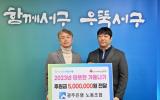 [µ¥Àϸ®Àü³² = ÃÖ¿µ¹Î ±âÀÚ] ±èÀ̰ ¼±¸Ã»ÀåÀº 30ÀÏ ¿ÀÀü ±¤ÁÖÀºÇà ³ëµ¿Á¶ÇÕ(À§¿øÀå ¹Ú¸¸)À¸·ÎºÎÅÍ °ü³» Ãë¾à°èÃþÀÇ µû¶æÇÑ °Ü¿ï³ª±â¸¦ À§ÇÑ ÈÄ¿ø±Ý(500¸¸¿ø)À» Àü´Þ¹Þ°í °¨»çÀÇ ¸¶À½À» ÀüÇß´Ù.