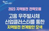 [µ¥Àϸ®Àü³² = Á¶¹ÎÀÏ ±âÀÚ] °íÈﱺ(±º¼ö °ø¿µ¹Î)Àº ¿À´Â 9¿ù 15ÀÏ ¿ÀÈÄ 2½Ã °íÈﱺû ¿ìÁÖȦ¿¡¼ ¡®°íÈï ¿ìÁֹ߻çü »ê¾÷Ŭ·¯½ºÅ͸¦ ÅëÇÑ Áö¿ª¹ßÀü ¿¬°è ¹æ¾È ¸ð»ö¡¯À̶ó´Â ÁÖÁ¦·Î Á¦3Â÷ 2023 Áö¿ª¹ßÀü Àü·«Æ÷·³À» °³ÃÖÇÑ´Ù. À̹ø Æ÷·³Àº Áö³ ¡¦